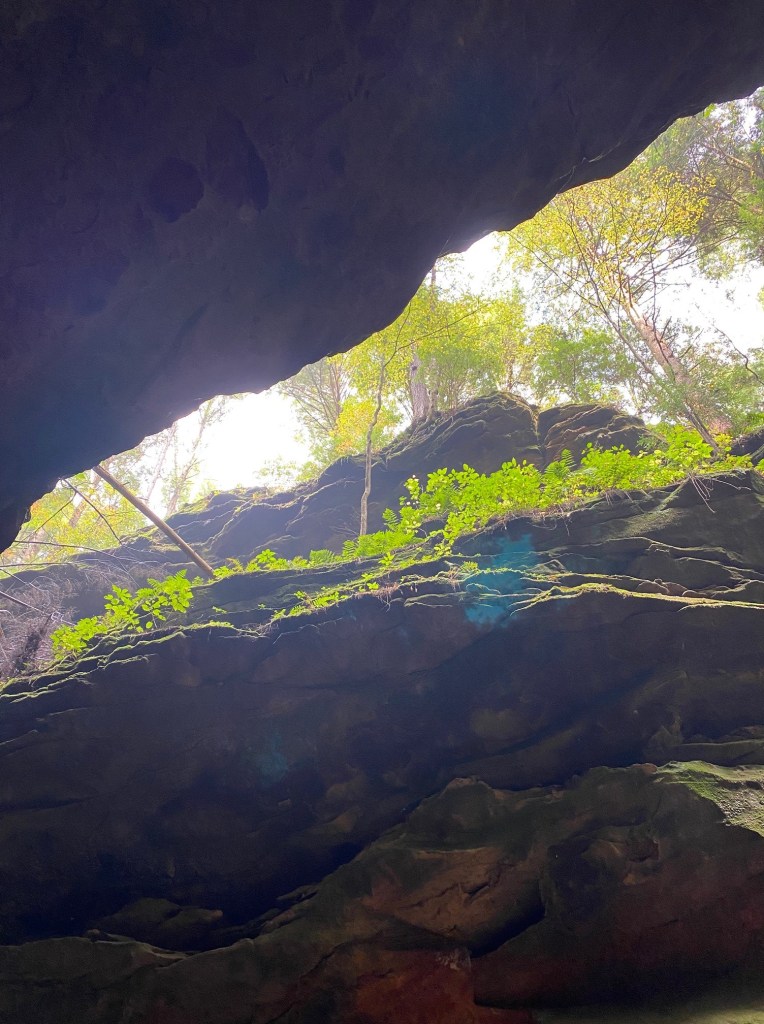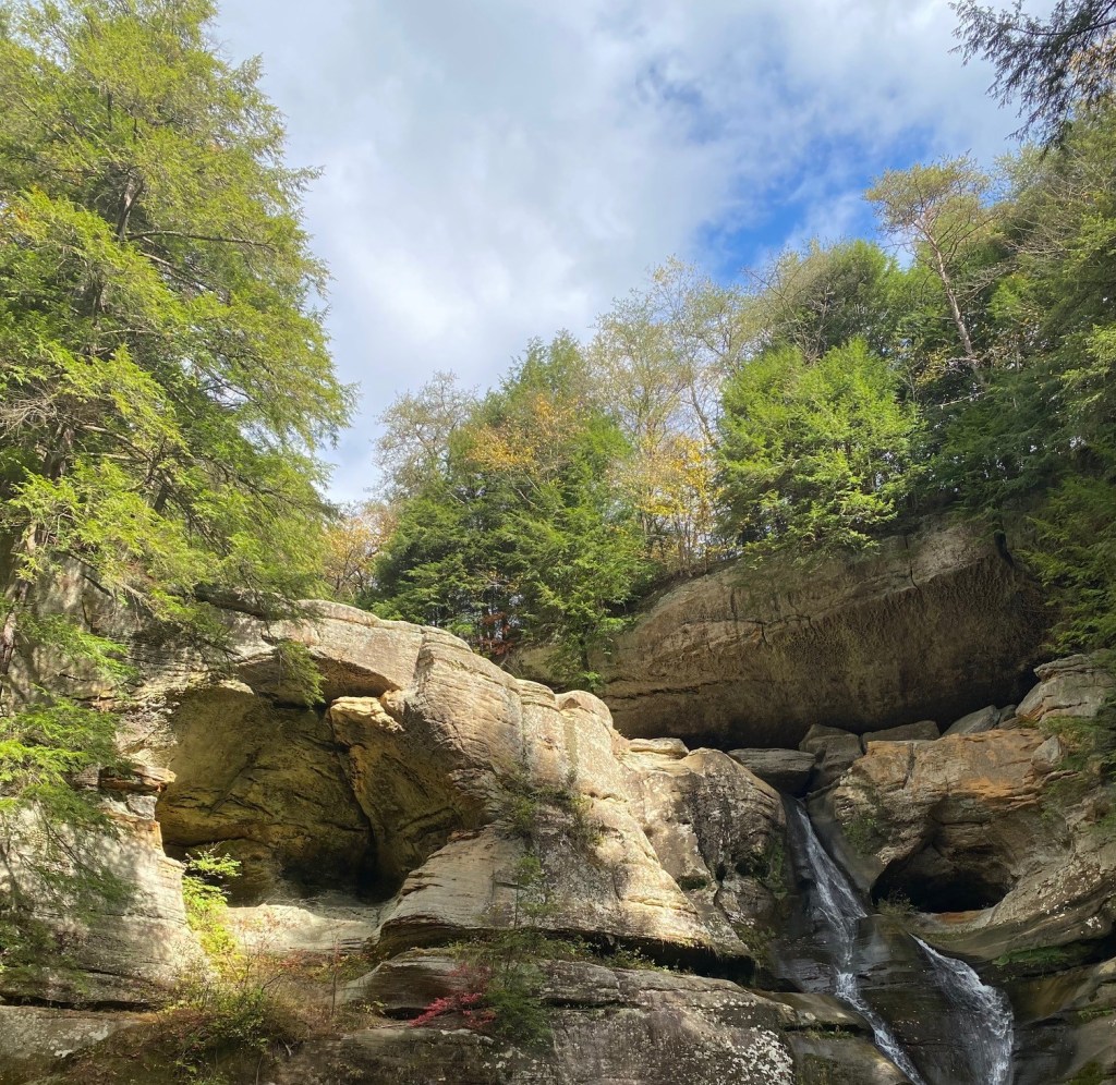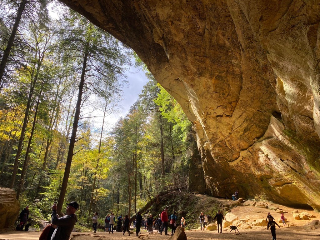Last weekend, our family escaped to Hocking Hills State Park for the kids’ fall break from school. This state park in the middle of the country has uncommon, beautiful hikes to caves, waterfalls and cliffs. It seems like an unusual phenomenon to find in Ohio. Over time, flowing water has eroded a soft layer of sandstone, resulting in some magnificent rock formations and natural features like caves and waterfalls.