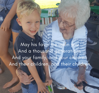 This is my Grandma Schipma, Marcie. I love this photo of her looking at my son Isaiah, because I feel like that is how she looked at all of us. Like she treasured us. She makes me think of love and generosity and hospitality and home. Generosity. When we rode our bikes to her house, … Continue reading May His favor be upon you
